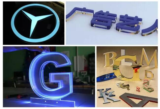 水晶字、立體商標(biāo)是廣告行業(yè)中不可缺少的表現(xiàn)形式。CO2激光切割機(jī)可在亞克力、雙色板等材質(zhì)上進(jìn)行精準(zhǔn)地切劃曲線圖案。由于激光切割機(jī)采用的是“非接觸”加工,不會壓壞材料,而且切口光滑,能直接省去二次加工。